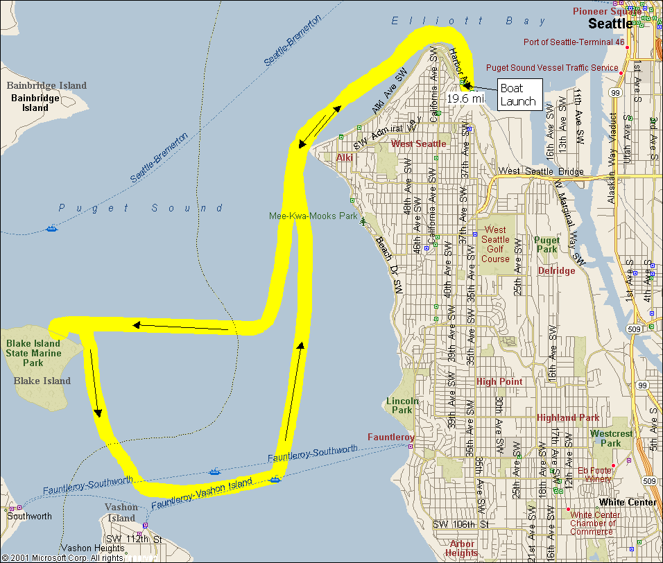 Feeling rather antsy after a couple of weeks behind a desk without any significant exercise, and without other plans to get in the way, I took Ron up on his offer. With the latest news relating to the whale claiming that it had been staying close to the West Seattle to Vashon Island ferry runs, we decided to launch at Seattle's Don Armeni boat ramp in West Seattle. This was six miles from the area where the whale was located, but it was the closest we could find a useful boat ramp. This meant that we would certainly be putting in a few miles on the water!