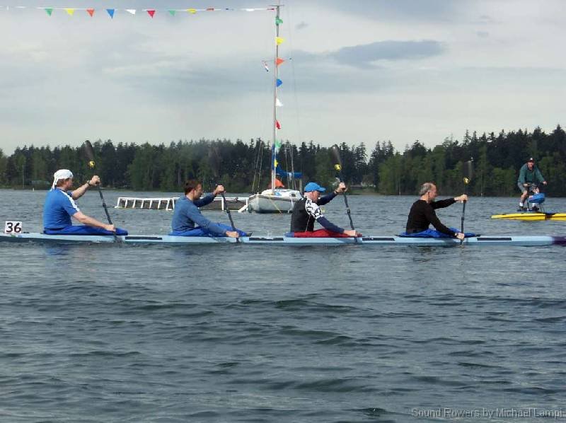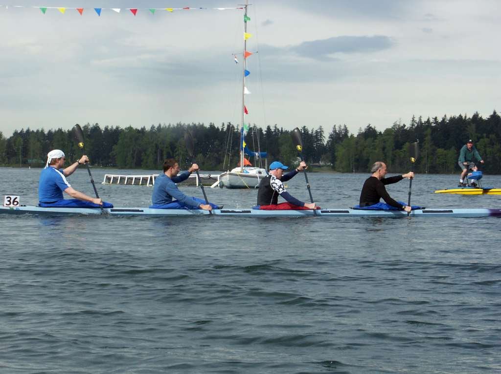 Men's quad kayak warming up